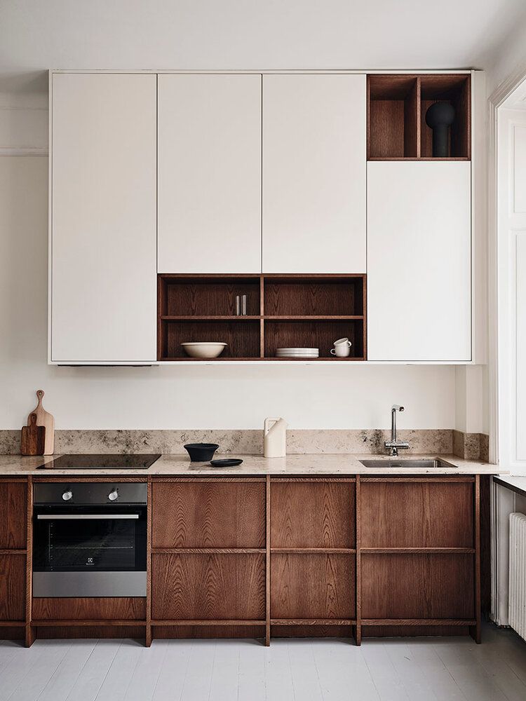 Với căn bếp có tông trầm làm chủ đạo, chúng ta sẽ cần lưu tâm đến các giải pháp lấy sáng tự nhiên và hệ thống chiếu sáng để làm căn bấp thật thu hút nhưng vẫn ấm cúng trong cảm nhận.